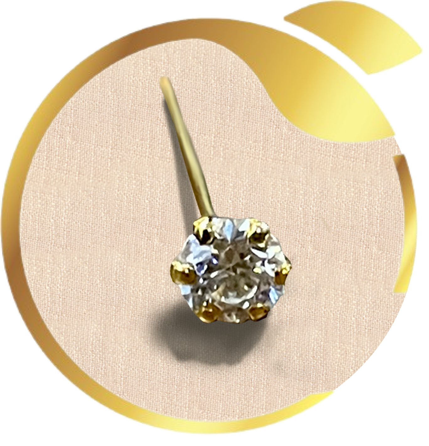 An 18 Carat is more appropriate for piercing as it provides the required strength and endurance on the piercing needle.Gold is a stable element and chemically inert. It does not bind chemically with others elements, nor does it rust or tarnish and is 100% non-reactive.